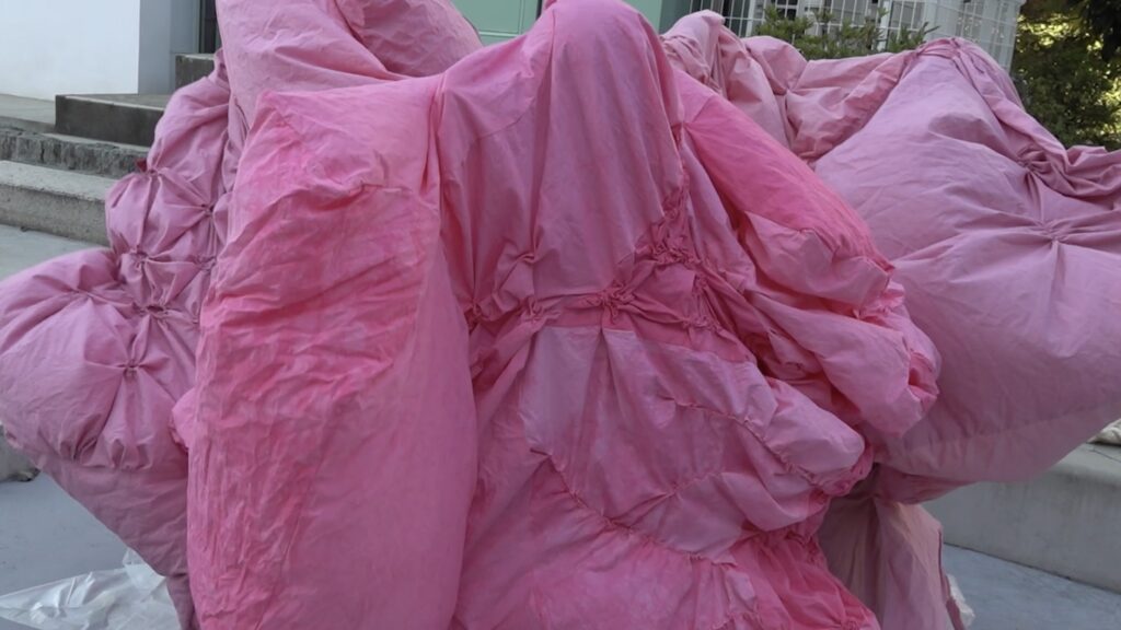 私たちのほとんどは型紙通りに裁断され、ミシンで綺麗に縫製された、”まとも”な服を着て生活している。そんな社会で身体の構造に沿わない、歪で動きにくい服を着て(しかも3人で)踊ること。踊りというよりは、服を必死に脱ぐような動きに滑稽さを感じるかもしれない。同じように人の悩む姿は周りからみたら結構不格好でダサかったりする。見せ物がしたいのではない。不格好な部分を隠さずに誰かと共有していくことに、私たちは希望をみている。
